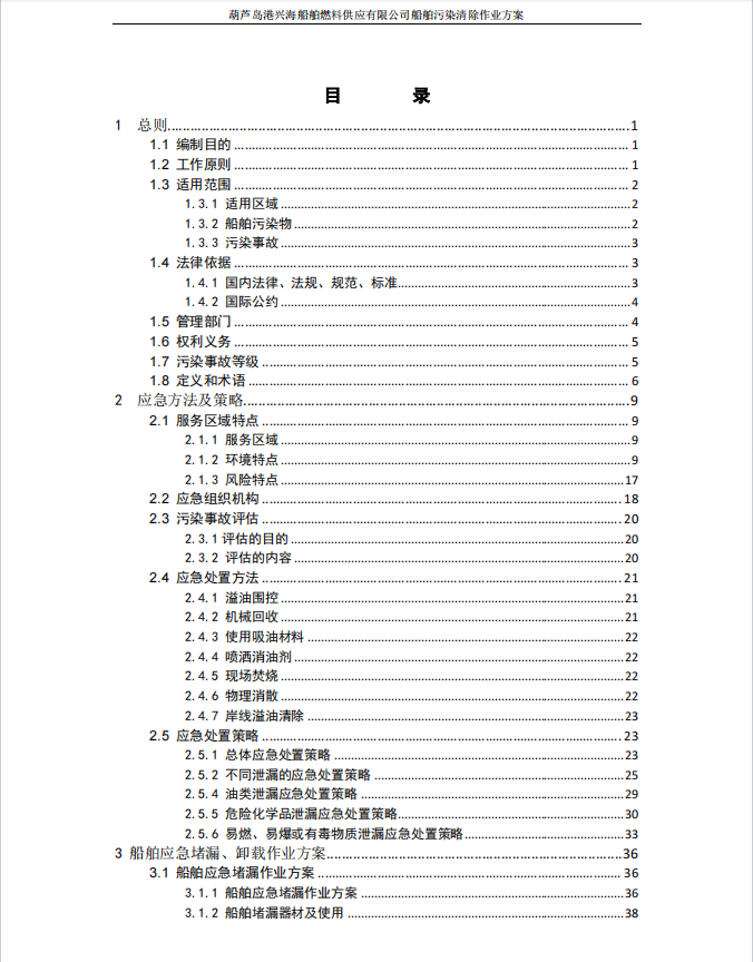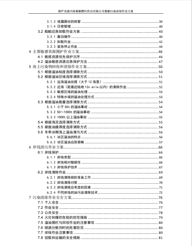 船舶污染清除作業(yè)方案(詳見實際文件)