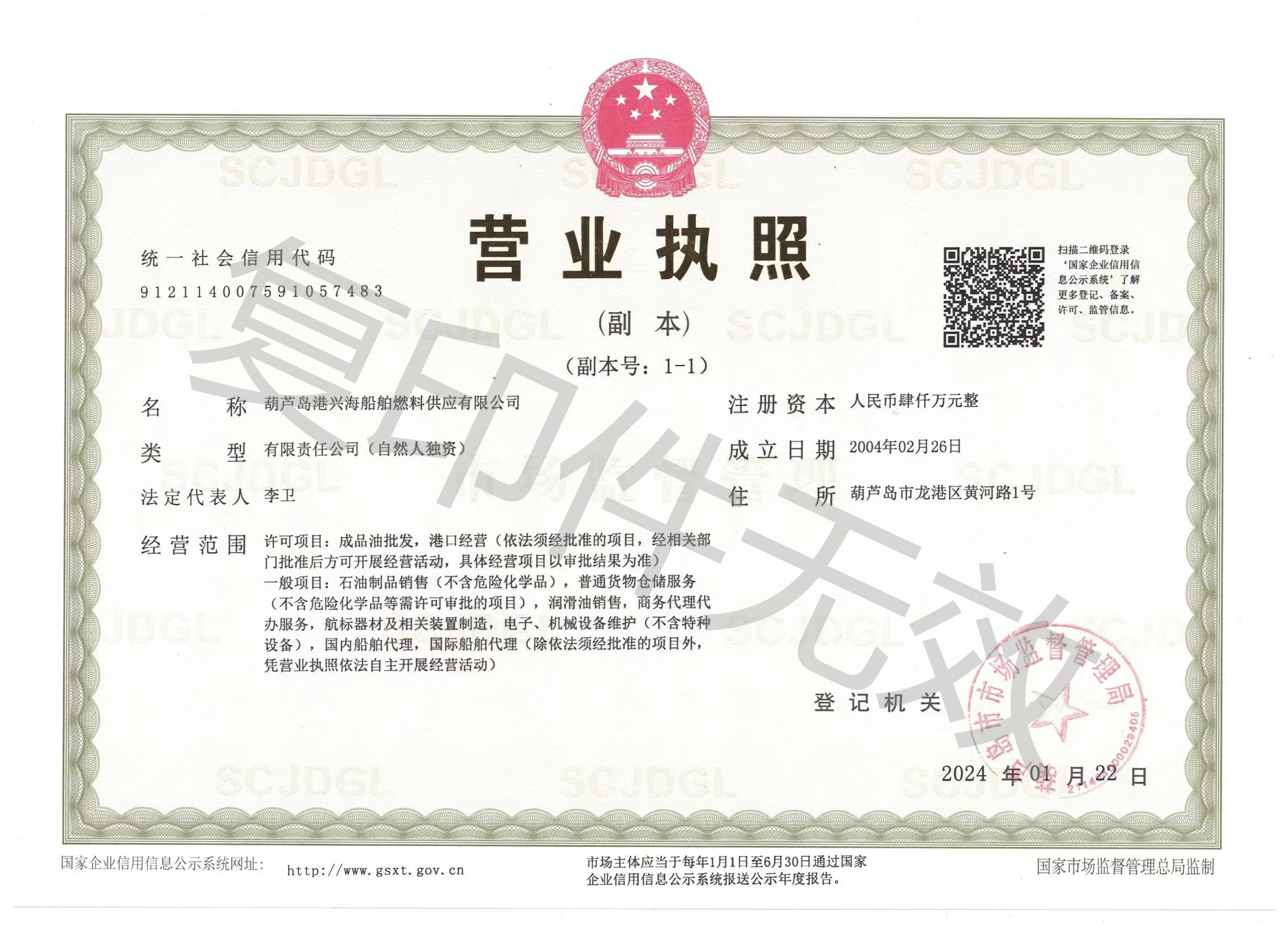 葫蘆島港興海船舶燃料供應(yīng)有限公司
